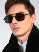 Men's Retro Aviator Sunglas...Oval Stone Tennis Bracelet - Charcoal Black