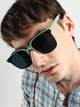 Men Foldable Rectangular Sunglasses - Black